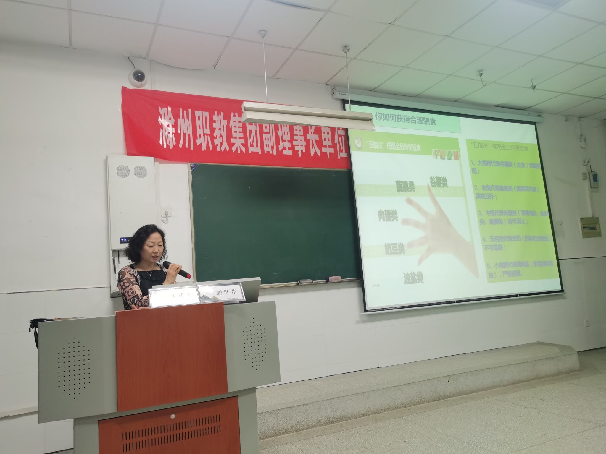 滁州市第一人民医院临床营养科主任潘世芹以《合理膳食 食养是良医》为主题,从人人必修饮食营养学、学会与自己身体对话、合理营养是生命源泉、如何获得合理膳食等4个方面并结合临床经验和典型案例为大学生做了科普讲座,告诉学生要向合理膳食要健康,人人都是健康第一责任人,不要“傻吃”,因为“傻吃”是导致一切健康问题的罪魁祸首,教会学生要做好生活方式的管理,防止病从口入,要“慧吃”,用“五指法”“三分法”搭配每日均衡膳食。