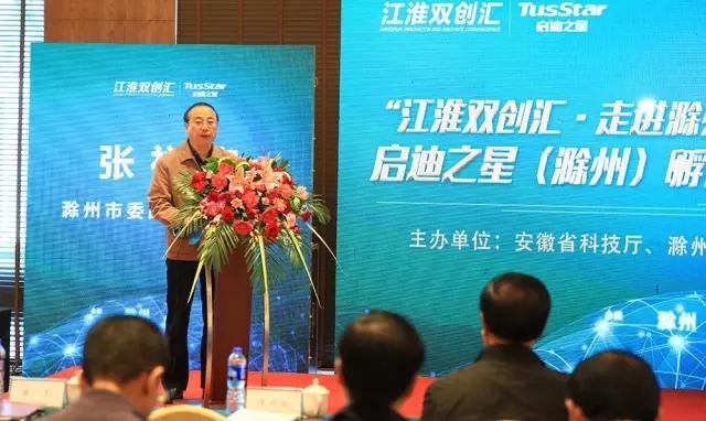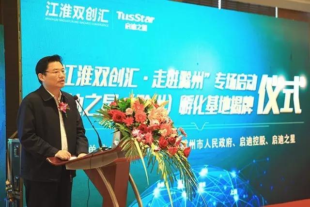 2016年10月16日上午,“江淮双创汇•走进滁州”专场启动揭牌仪式暨启迪之星(滁州)孵化基地揭牌仪式在滁州隆重举行。滁州市委书记姚玉舟,滁州市委副书记、市长张祥安,安徽省科技厅副厅长刘明平,滁州市委常委、副市长金力等领导出席,活动由滁州市委常委、副市长金力主持。
