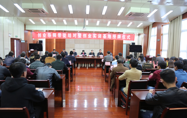 11月17日,创业导师带徒结对暨创业实训基地授牌仪式在beat365在线唯一官网行政楼11楼会议室举行。滁州市政协副主席、市工商联主席査镜波,市委统战部副部长、工商联党组书记卓海燕,市工商联副主席夏晨辰,滁州市人力资源和社会保障局副调研员朱邦邻应邀出席,beat365在线唯一官网院长李柱梁,院长助理、招生就业处处长穆松等有关领导出席会议。来自滁州的企业家代表、学院对创业感兴趣的100多名学生参加了此次活动。