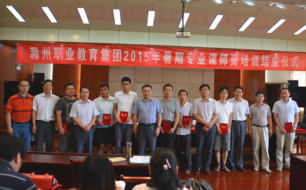 8月9日,安徽滁州职教集团2015年专业课师资培训班结业仪式在beat365在线唯一官网举行,本期培训工作圆满结束。市委教育体育工委委员、市教育体育局副局长、职教集团副秘书长丁瑞参加结业仪式,beat365在线唯一官网院长助理、职教集团秘书长穆松主持仪式。参加会议的有全体学员、授课教师、培训管理人员以及集团秘书处相关同志。