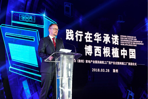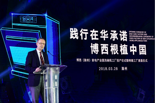 博西家电集团董事会成员兼首席运营官舒赫出席仪式并表示:“博西(滁州)洗碗机工厂正式投产,标志着我们的本土化战略向前迈进了关键性一步,博西家电将不遗余力地将先进的技术和生产线引入博西(滁州)家电产业园,并努力将其打造成为博西家电的工业4.0示范基地。”