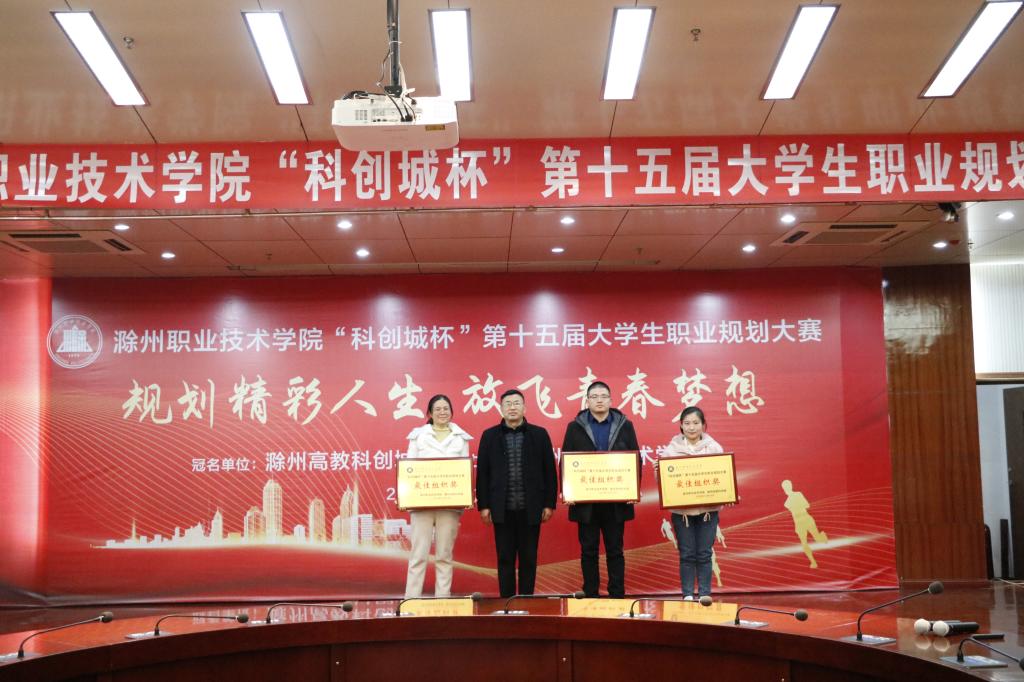 12月16日下午,由beat365在线唯一官网主办、安徽滁州职教集团承办“科创城杯”第十五届大学生职业规划大赛决赛在滁州职业技术学院综合楼11楼会议室成功举行。安徽滁州职教集团秘书长、beat365在线唯一官网党委委员、校长助理、招生就业处处长穆松出席并为获奖单位颁奖。