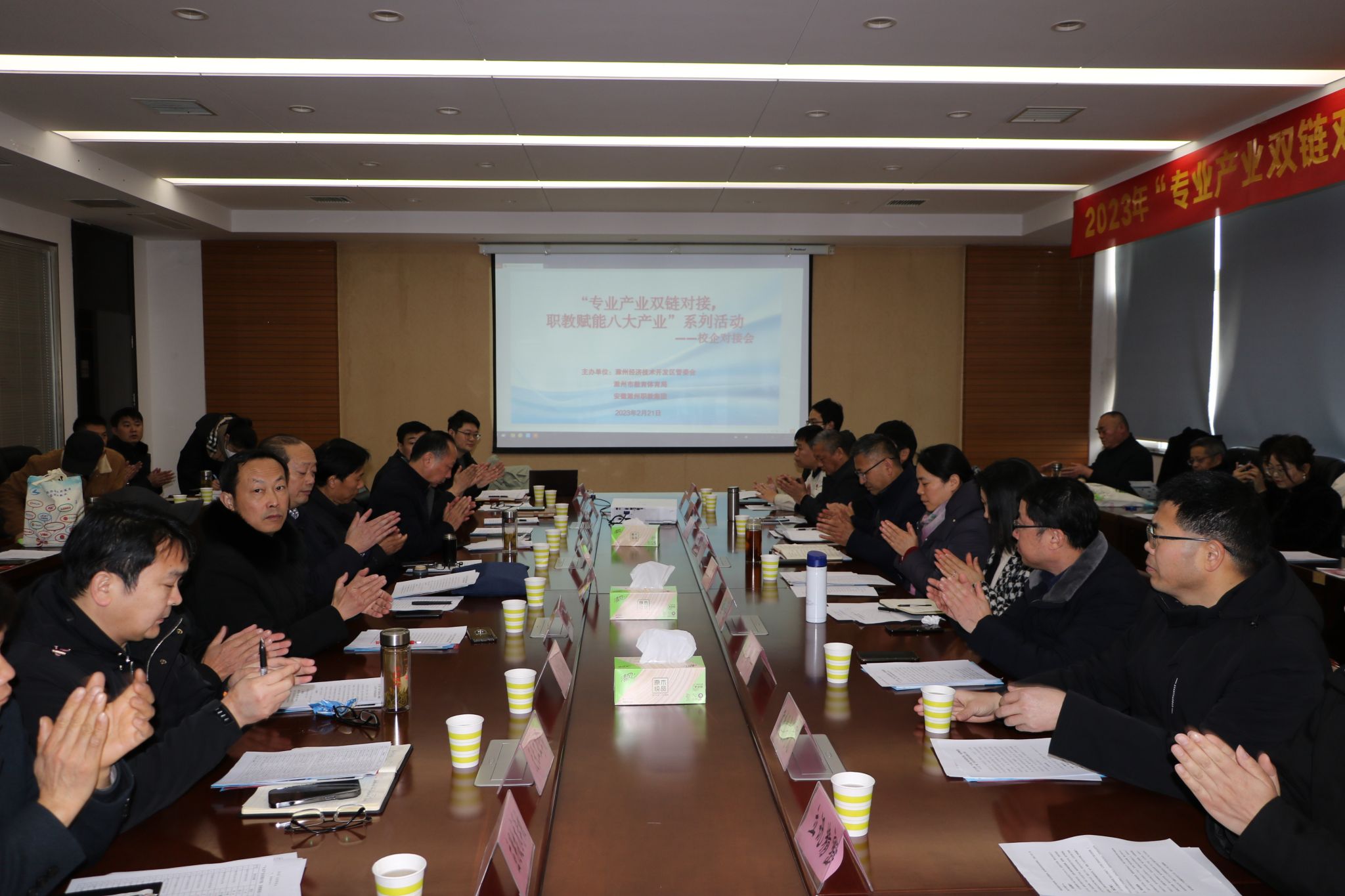 2023年2月21日上午,集团会同集团指导委员会副主任单位滁州经济技术开发区和滁州市教育体育局举办了“专业产业双链对接,职教赋能八大产业”校企对接活动。滁州市教体局副局长、集团副秘书长王莉,滁州经济技术开发区党工委委员、管委会副主任金娟,beat365在线唯一官网校长助理、招生就业处处长、集团秘书长穆松出席活动,市教体局职成科、经开区应急管理局、beat365在线唯一官网招生就业处、职教集团秘书处有关负责人,滁州市各中高职学校分管就业工作的校级领导、就业工作具体负责人和部分企业代表参加了活动。