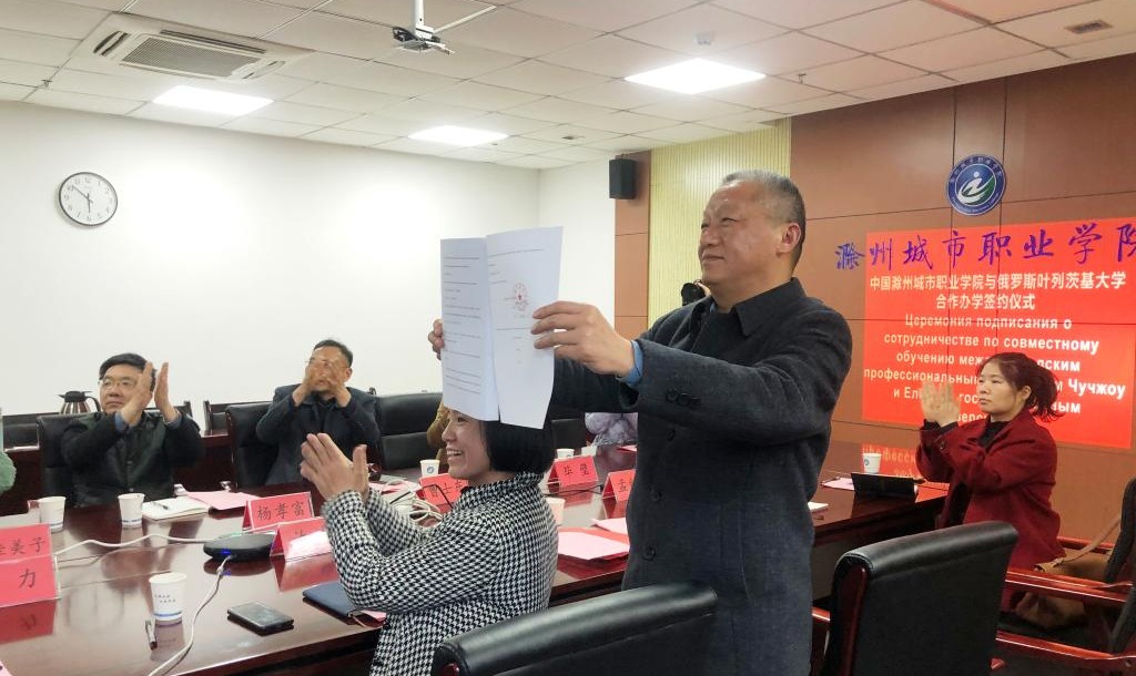 最后,施向阳指出,希望在新时代中俄全面战略协作伙伴关系大背景下,两校能以此次合作为契机,充分发挥各自优势,共同提升合作办学的能力和水平,开拓更高水平、更多元化的合作办学路径和成果,为“一带一路”倡议做出更大的贡献。希望以合作办学为平台,滁州城市职业学院与叶列茨基国立大学联手,走出一条高质量、高水平发展的中外合作办学道路。