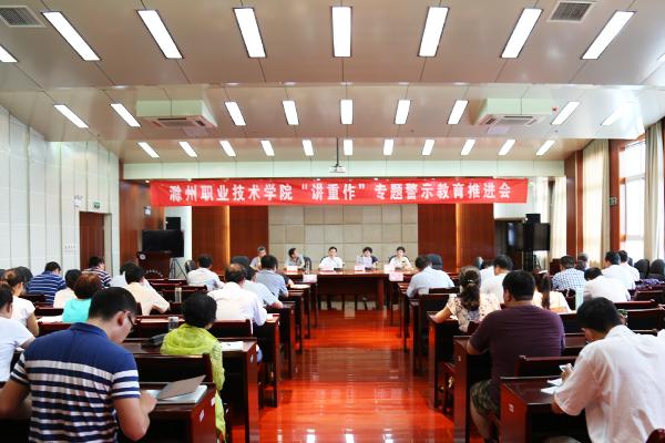 7月7日下午,学院在综合楼十一楼召开“讲重作”专题警示教育推进会。学院党政领导班子成员,各部门主要负责同志,思政部负责同志和列席中心组学习会议的有关负责同志,各党总支书记、各支部书记、“两学一做”学习教育常态化制度化协调小组办公室全体成员参加了会议。会议由院党委副书记、院长李柱梁主持。