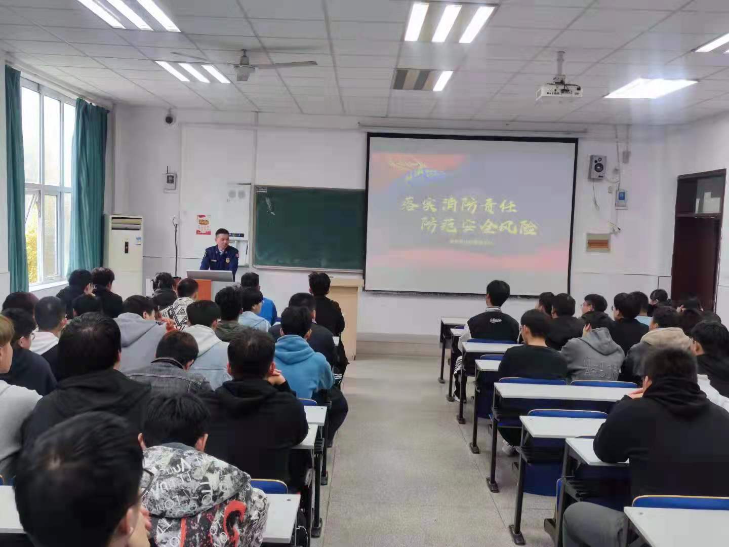 2021年11月17日安全保卫处组织学校实验实训管理人员及2021级新生代表,开展2021年消防安全演练活动,本次活动分两个部分:一是邀请滁州市消防救援支队来校进行关于日常用电的消防安全知识讲座;二是开展消防灭火实战演练,要求实验实训管理人员必须具备灭火器的使用及扑灭明火的能力。