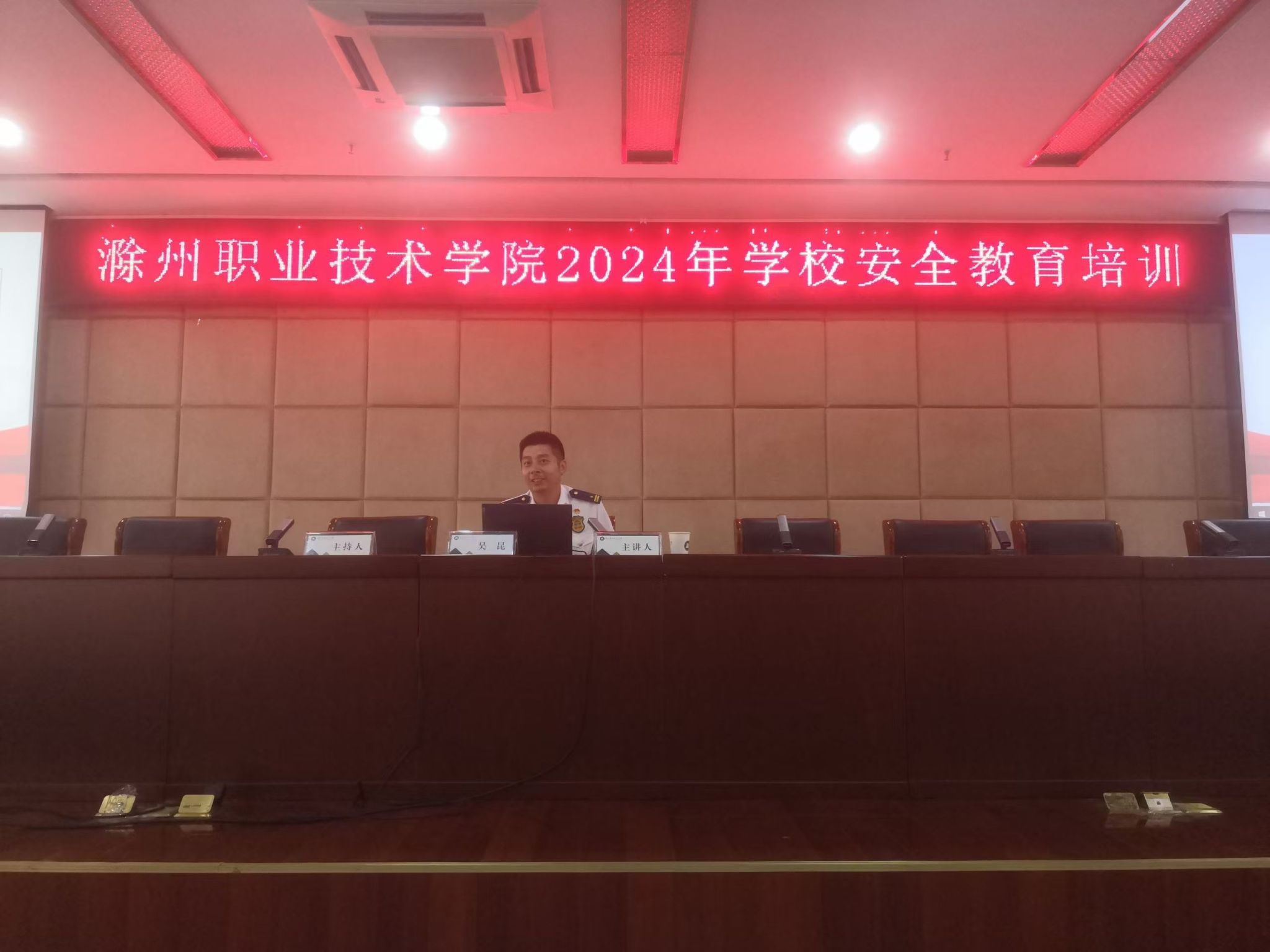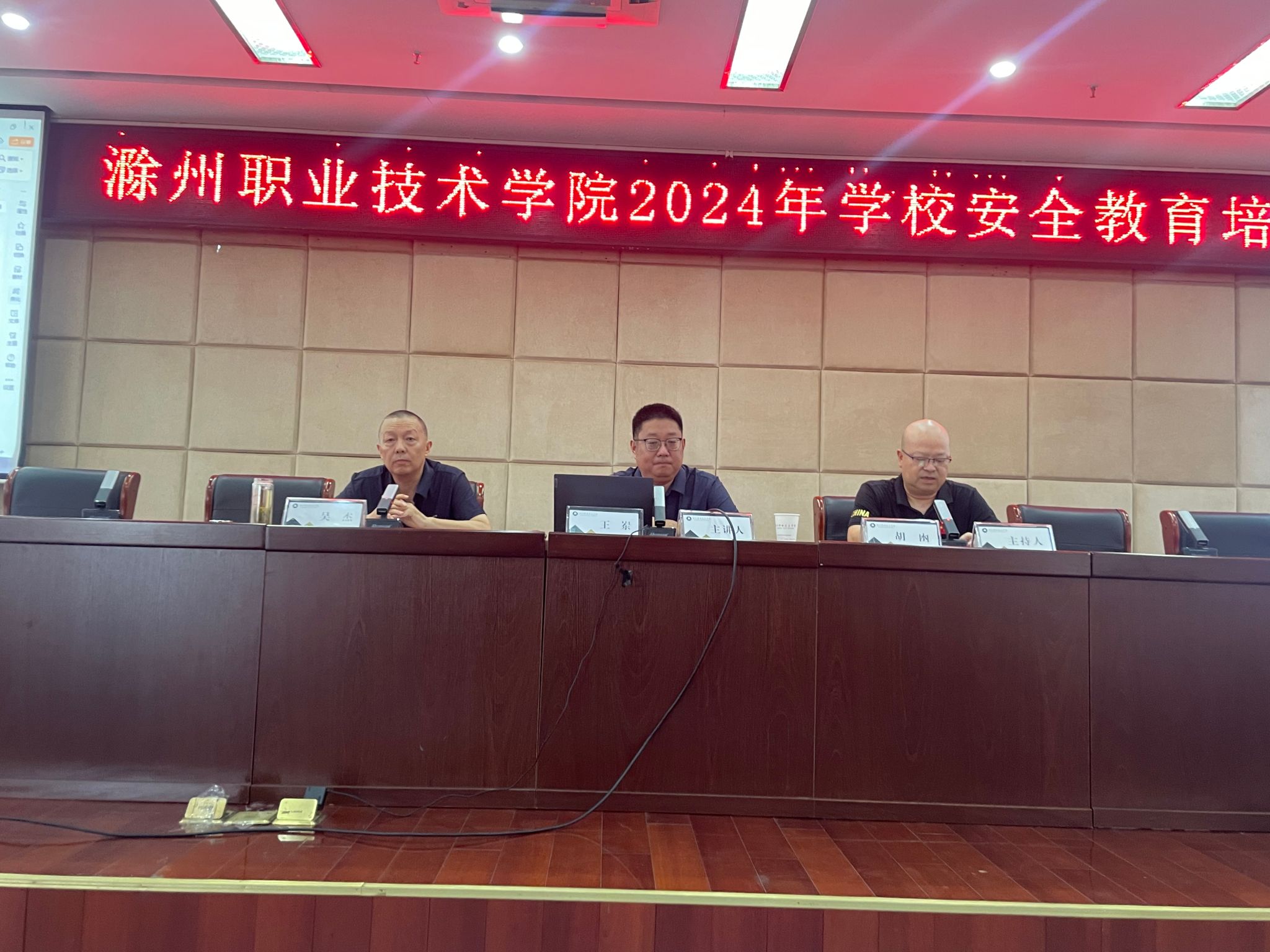 培训邀请滁州学院安全保卫处处长王岽、滁州市公安局南谯分局国保支队副支队长张可为、滁州市南谯区消防救援大队吴昆担任主讲。针对校园安全体系建设、交通安全、学生心理健康、反电诈、防溺水、意识形态领域、消防安全等重点领域开展专项培训,并就如何做好以上各领域的安全管理工作进行讨论交流。