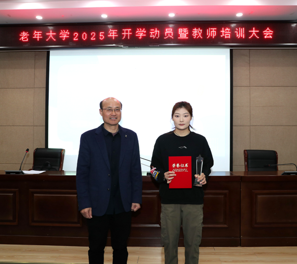 会上,李永泉还为在2024学年取得优异成绩的教师和学员颁发了获奖证书和奖品,为在过去一年做出突出贡献的程莹莹老师(老年教育好课程)和杨婷婷老师(“能者为师”二等奖)颁发了证书和奖杯。