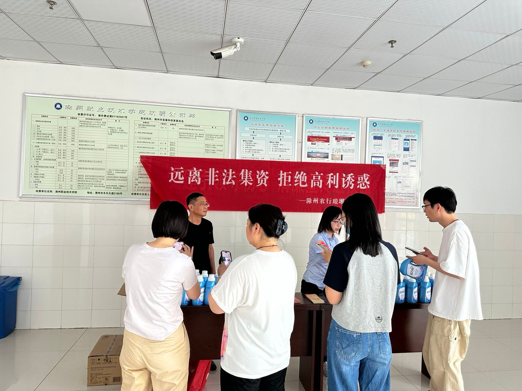 为了普及、宣传金融知识,提醒师生远离非法集资,进一步增强beat365师生正确识别和自觉抵制非法集资的意识和能力,2023年6月16日下午,计划财务处邀请滁州农行在校内展开“远离非法集资 拒绝高利诱惑”宣传活动。
