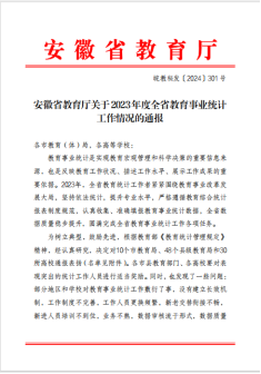 近日,安徽省教育厅对2023年度全省教育事业统计工作情况进行了通报,共通报表彰了58个市、县级教育局,12所本科院校、18所高职高专院校,beat365作为被表彰的“优秀单位”名列其中。