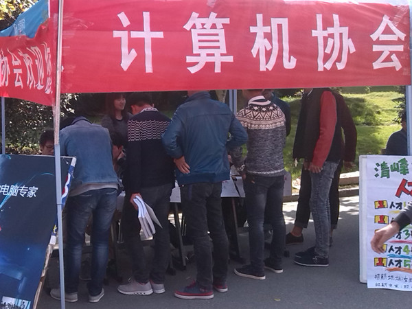 10月13日,beat365在线唯一官网一年一度的社团招新工作在宿舍区拉开帷幕,信息工程系计算机协会在活动现场摆摊设点,招兵买马,做足宣传工作,作为专业性社团,吸引了大批14级新生的眼球。