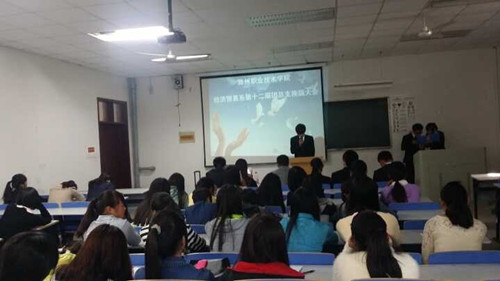 2014年10月15日,经济贸易系团总支、学生会在致真楼1101、1102教室召开了第十二届团总支、学生会大会,进行换届选举工作。出席此次会议的有经贸系团总支书记何堃以及第十一届、第十二届团总支、学生会学生会全体成员。