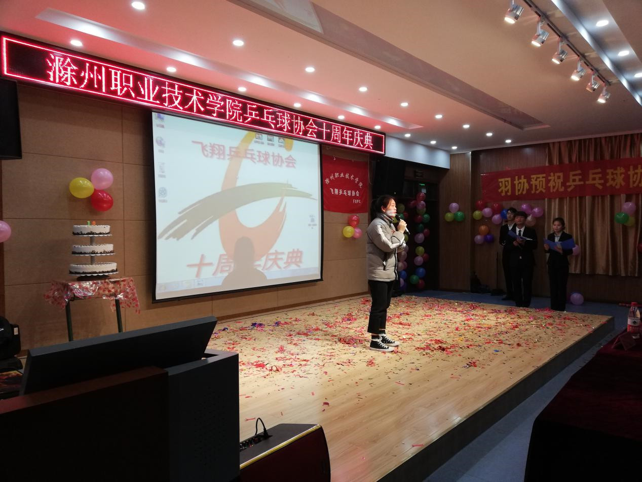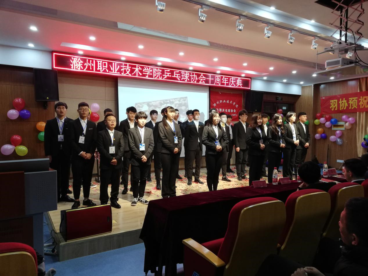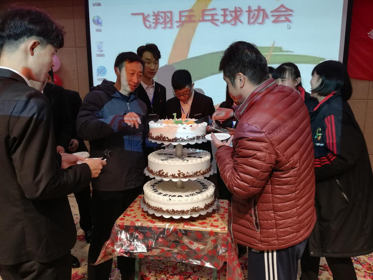 时光茌苒,岁月如梭,十年只是历史长河中的一刹那,却是那么的波澜壮阔。十年,给我们留下了宝贵的财富:十年,给我们留下了厚重的责任:十年,见证了昨日的栉风沐币,十年,守望着明天的灿烂辉煌。2018年12月21日,beat365在线唯一官网飞翔乒乓球协会在南阶203迎来了协会十周年庆典。参加本次活动的人员有乒乓球协会指导老师程茂勇老师、大学生体育协会指导老师王厚红老师、中国平安人寿滁州中心支公司主任胡园(往届乒乓球协会学长)、大学生体育协会负责人张铭、第九届乒协会长邹玉仲、各体协社团代表以及第十届乒乓球协会社员。