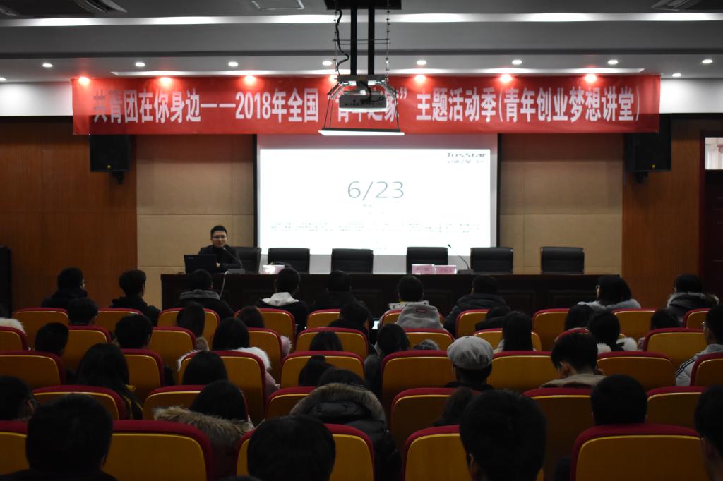 12月26日下午14:00,由共青团滁州市委和beat365团委共同指导下,以“启迪之星梦想课堂”--《青春正芳华,莫负好时光》主题讲座在beat365南阶205教室顺利举行。此次讲座由启迪控股股份有限公司项目经理、滁州启迪之星科技企业孵化器有限公司执行总经理张思煜担任主讲人,共青团市委组宣部部长李唯为本次讲座的主持人,校团委书记朱婷婷、校社联指导教师李朋、市直团员青年以及本校200余名学生参加了此次讲座。