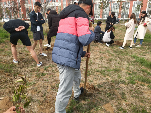 阳春三月,草长莺飞,又是一年植树时。植树节是一些国家以法律规定宣传保护树木,并动员群众参加以植树造林为活动内容的节日。为了增强广大师生珍惜绿色的责任心,积极践行高校学子环保理念、展现当代高校大学生的环保意识和主人公意识,飞翔乒乓球协会于2019年3月12日在学校空地举办主题为“贡献力量,奉献绿色”的植树活动。参加本次活动的人员有乒乓球协会、会计协会旅游协会以及网球协会全体社员。