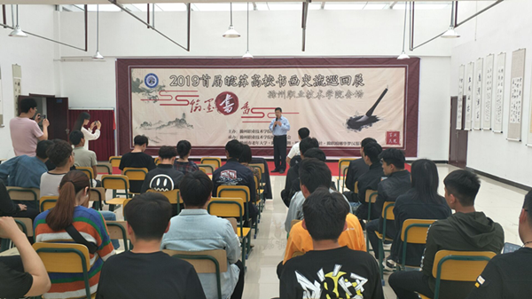 为丰富大学生的校园文化生活,提高大学生的审美水平,增进大学生之间的交流,提高大学生的艺术素质,2019年4月25日beat365在线唯一官网团委主办,书法协会承办,乾清太极社协办的首届皖苏高校书画巡回展在大学生活动中心一号活动室厅开帷幕。参加本次书画交流会的有:副院长吴大明、社联指导老师李朋、滁州市琅琊区老年大学书画老师,以及各个社团代表共计120人。本次活动由书法协会程富贵主持。