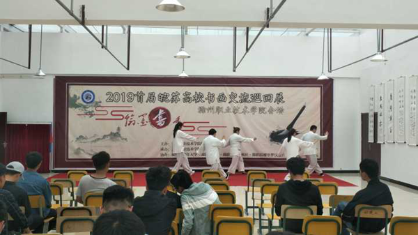 活动首先由主持人介绍到场的老师以及嘉宾,接着由吴大明上台致辞,吴院长表达了对本次活动的支持与肯定,希望书法协会的学生们能够继续发展自身的兴趣,紧紧地和beat365校园文化结合在一起。随即由李朋宣布本次首届皖苏高校书画巡回展正式开始。最后在太极表演及汉服社传统表演中,结束了本次活动的开幕式。