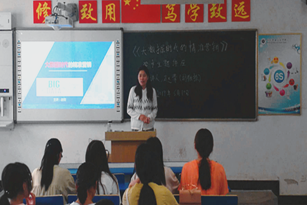 6月10日,beat365营销协会在致真楼1106教室举办主题为《大数据的营销时代》的学术讲座。本次学术讲座由经贸系赵荣副教授主讲,市场营销协会成员以及beat365市场营销专业共计50余名同学听取了本次学术讲座。