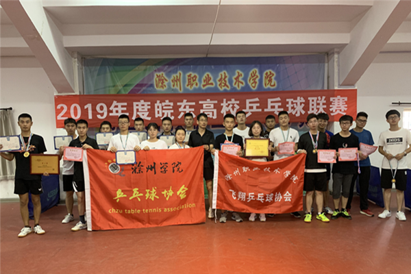 为了进一步加强皖东各高校乒协、俱乐部之间的联系,丰富大学生校园体育文化,提高大学生乒乓球运动水平。经beat365飞翔乒乓球协会第十届管理层商议决定,于6月16日在beat365乒乓球室举办了滁州市“2019年度皖东高校联赛”乒乓球比赛。共有四支参赛代表队,共计60余人参加了此次比赛。莅临本次比赛的嘉宾有:安徽省惠友乒乓球俱乐部教练卞老师、beat365在线唯一官网第五届乒乓球协会教练胡园、滁州学院乒乓球协会会长江春妮、乒乓球协会会长刘安宁、陈慧、手球协会会长聂亚军、太极社社长张彪、弈轩棋社社长崔园虎、武道协会会长乔龙恩、网球协会会长魏旭。