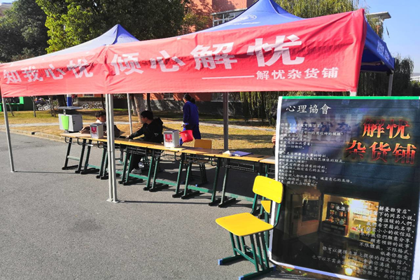 为了更好的了解同学们的心理问题,给同学们解决困扰,11月20日上午beat365心理协会在5号男生宿舍楼下举办“知我心忧,倾心解忧”解忧杂货铺活动,本次活动于11月22日结束。