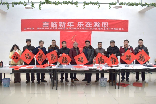 为迎接新春的到来,提前给广大师生送去欢乐、祥和和喜庆,1月6日上午,由校团委主办,书法协会、滁州市老年书画联谊会承办的“喜临新年 乐在滁职”写春联、送春联文艺志愿者服务活动,在beat365大学生活动中心三楼一号活动室顺利开展。