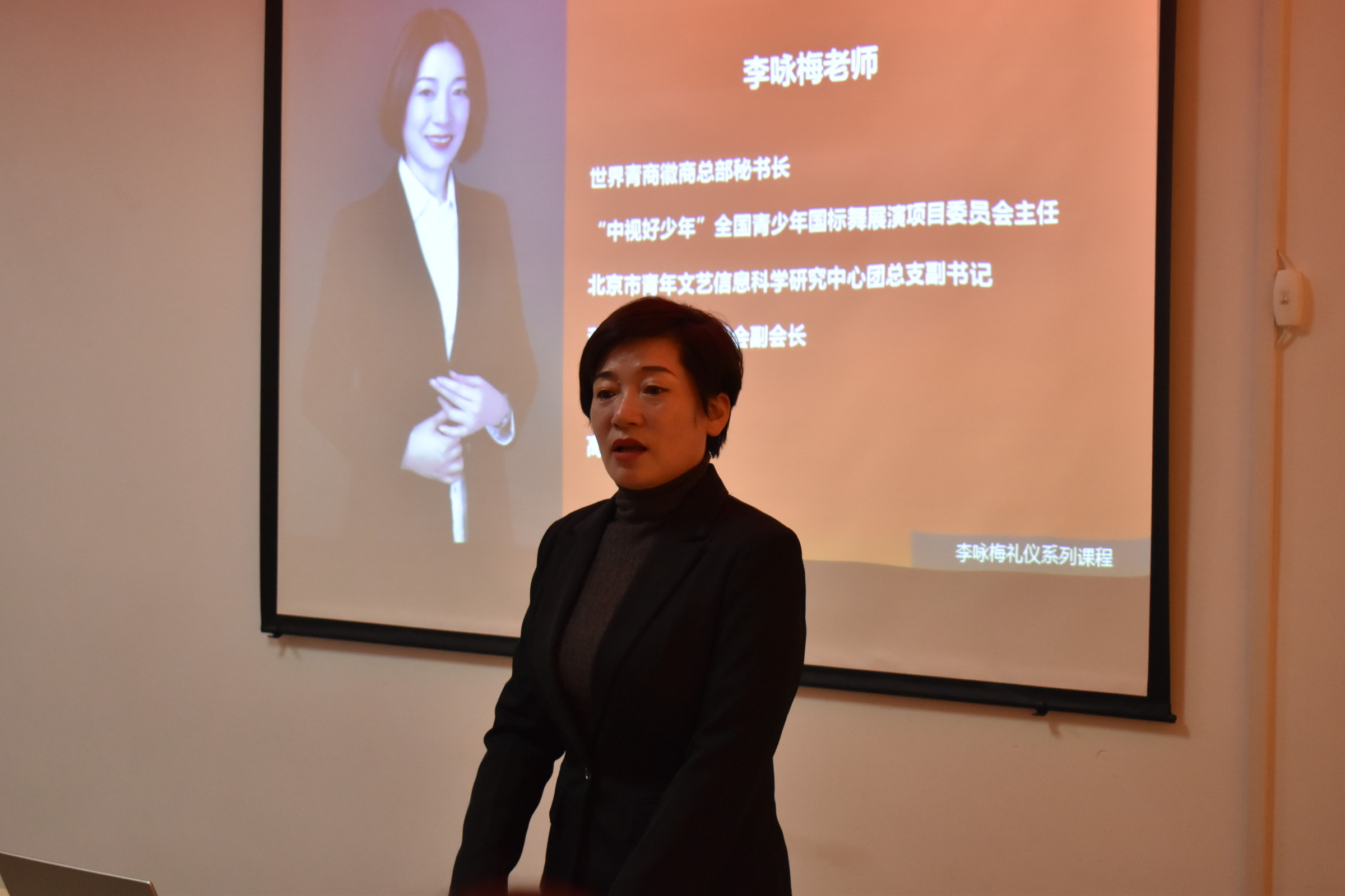 讲座由高级礼仪培训师李咏梅主讲。“礼仪体现细节,细节展现素质”,这是李永梅老师对礼仪定义的概况,而礼仪的作用就是完善自身,增进交往。李咏梅老师主要从礼仪概念、礼仪形象两个方面介绍了礼仪作用和规范动作,对礼仪的仪容、仪表、仪态三个方面做了生动详细的讲解,阐述了礼仪的重要性。随后李咏梅老师饱含激情以亲身示范的演绎方式,结合各种场所向同学们普及正装穿着规范、优雅姿态变化及禁忌、手势仪态等丰富的社交礼仪知识,学生们纷纷现场试学,加深授课内容的理解,掌握礼仪的要领与规范。