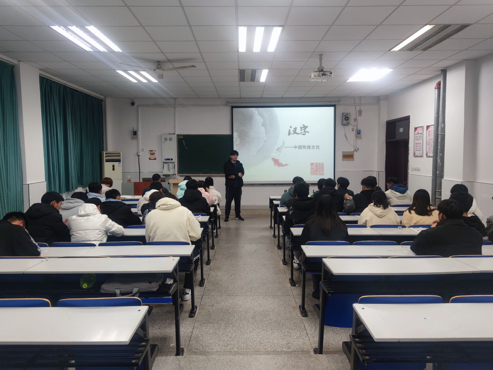 为进一步弘扬中华优秀传统文化,让大家能更好地说汉语、写汉字、品文化、学国学、传礼仪、爱中华,2021年12月13日晚,明德学社社长王鑫在5113教室为四十余名同学作了“汉字与中国文化”专题讲座。