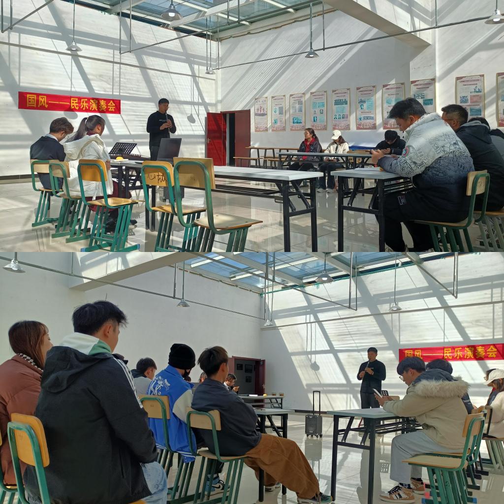 本着为传承与发扬艺术精粹尽一份微薄之力的宗旨,希望通过民族乐器演奏会让更多的人能够认识并了解民乐,了解民族乐器。民乐坊于11月26日中午十二点半在一号活动室举办了国风——民乐演奏会,参加本次活动的有滑板社、清风文学社、汉服社、食品协会、心理协会、太极社、书法协会。