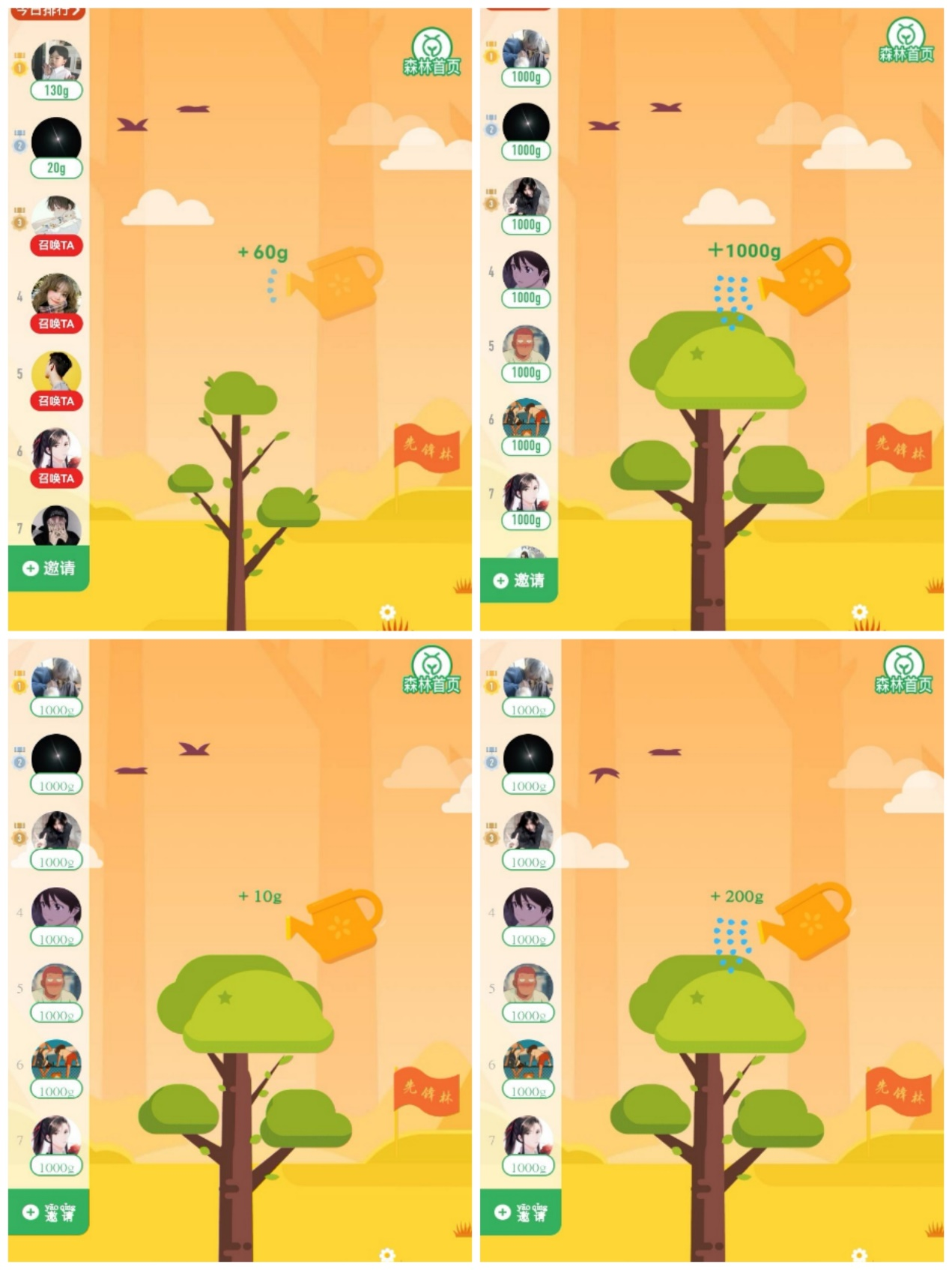 此次活动通过志愿者线上组团每日虚拟浇水积攒能量再兑换,公益组织线下进行实体树苗种植的方式进行。社团成员通过各种渠道吸引身边同学加入团队。每日坚持不懈打卡以积攒绿色能量,为“雷锋月先锋志愿林”的建成贡献一份指尖力量。