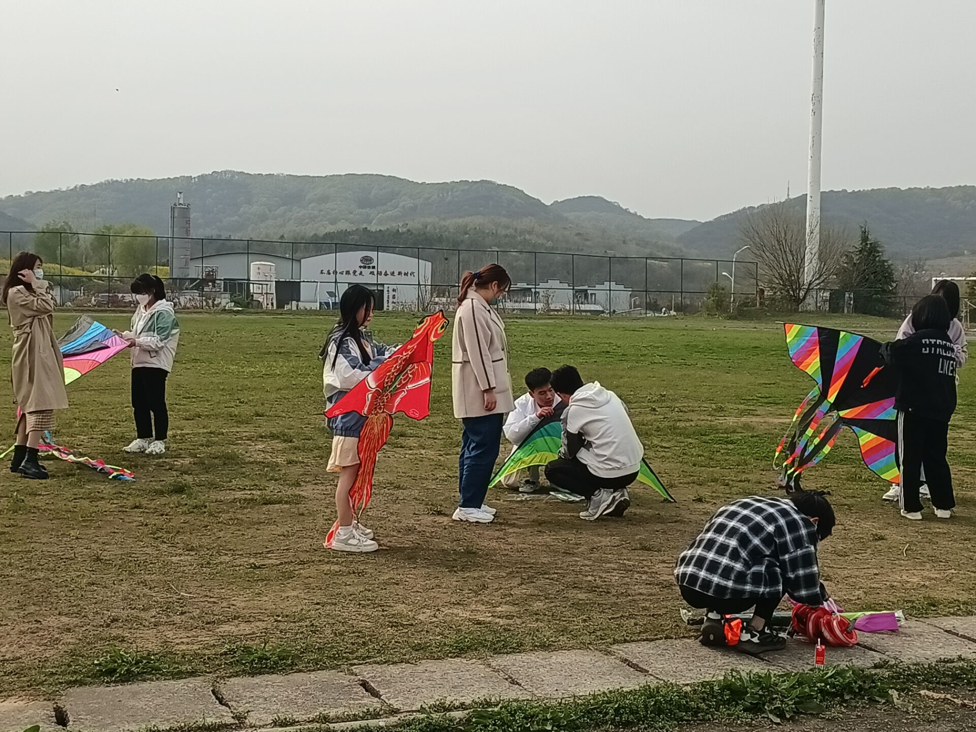 每逢春季来临之际,草长莺飞,也正是放风筝的好时节。放风筝既是一项有益于身心健康的活动,又能锻炼身体。当人们全神贯注放风筝时,大脑高度集中,心中的种种忧愁也会消失在这万里晴空之中。故事的开始总是曲折的,花艺社每组成员都在组装风筝上栽了跟头,不过大家仍然没有放弃,在同学们的互帮互助中,风筝一个接一个的飞起来了,陈旧的操场上回荡着欢声笑语。大家在放风筝的过程中,变得更加了解彼此,同时也建立了深厚的友谊。