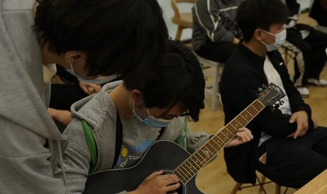 本次活动吉他社为全校喜爱吉他的学生提供了一个展示自己的平台,本次开课的内容主要是围绕如何选购吉他、吉他构造、吉他基本功练习、手型矫正以及吉他练习的基本方向来展开。考虑到大部分同学没有吉他,并且是零基础,吉他社提供了吉他给同学们练手。