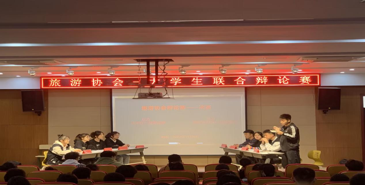2022年11⽉6⽇下午,由旅游协会举办的“辩论赛”决赛在南阶203隆重举⾏。此次辩论赛由旅游协会会员杨灿主持,旅游协会社长方鑫苗和协会部长担任评委,旅游协会、清峰文学社、管理学院学生会成员观摩了此次活动。