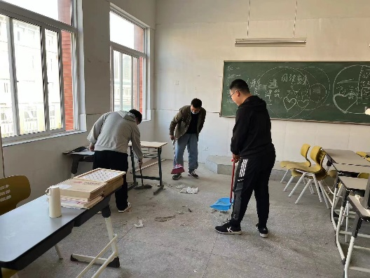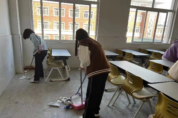 11月5日,建筑环境社指导教师董波组织社团成员在4号楼开展义务清扫教室活动。