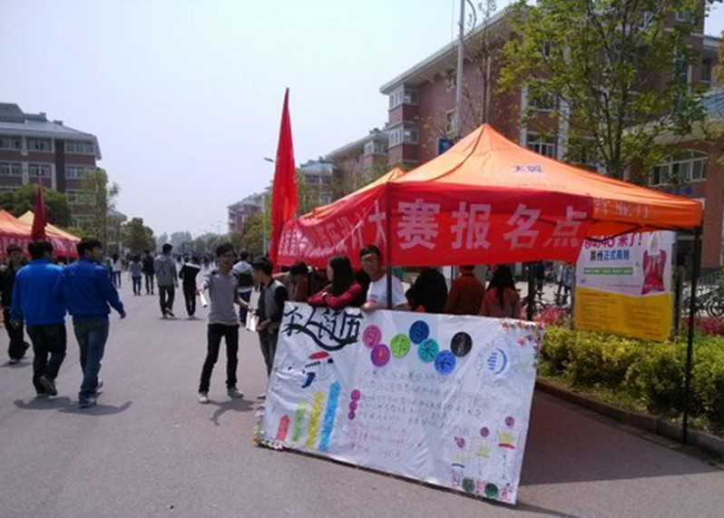 4月14—15在五号宿舍楼下进行设点宣传共有三十多人现场报名参加个人简历大赛.并于4月20号上午邀请了周多道老师在4102教室对参赛选手进行培训。