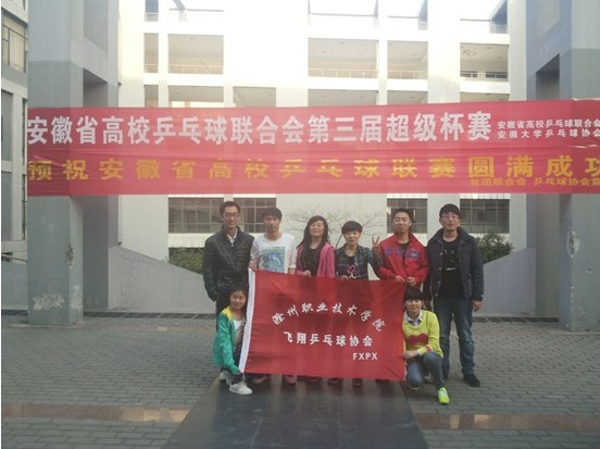 为进一步加强我院学生乒乓运动球水平、丰富大学校园文化、加强与各高校乒协、俱乐部之间的交流,我院飞翔乒乓球协会参加了安徽省高校联合会第三届“超级杯”乒乓球比赛。