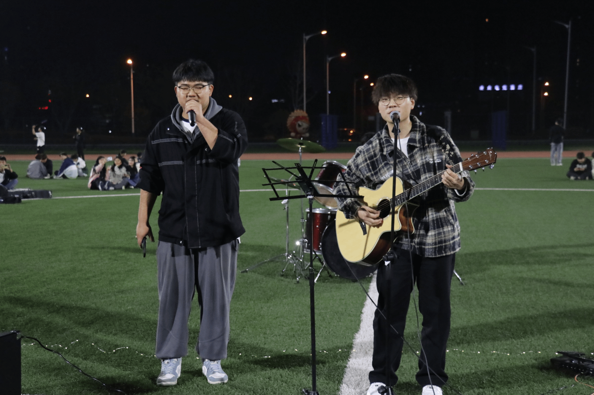 活动开展过程中,同学们积极展现自我,不局限于传统,各种乐器齐上阵,整场音乐会随之推动,在场同学为之欢呼,呐喊,充分体现了当代大学生积极向上的精神风貌。最后一首周杰伦的《晴天》把全场的氛围推向高潮,齐声高歌,音乐会伴随着大家的掌声胜利落幕。