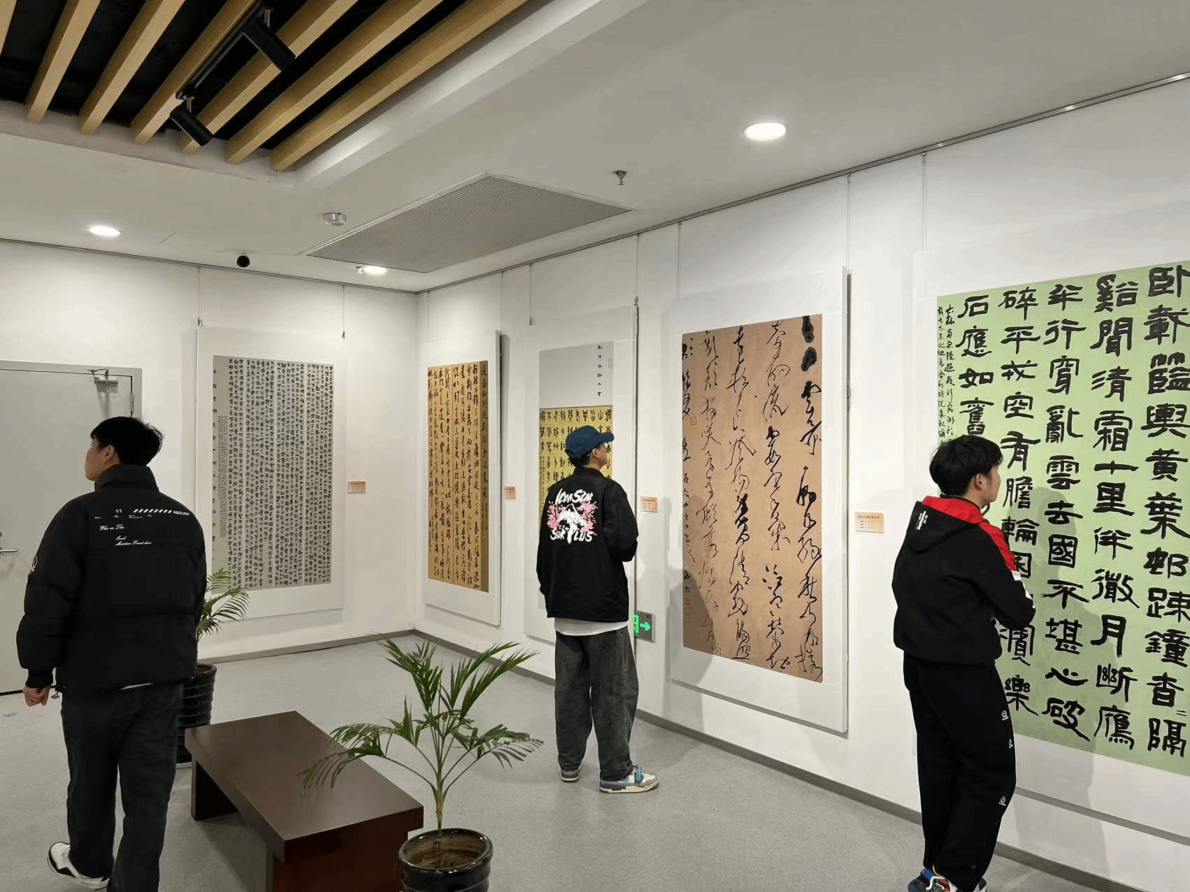 活动中,书法协会的成员们出发去滁州市文学艺术中心线下观展。成员们认真观赏书法作品,学习大师风范。满足大学生精神文化需求,从中体会更多关于书法带给大家的意义。