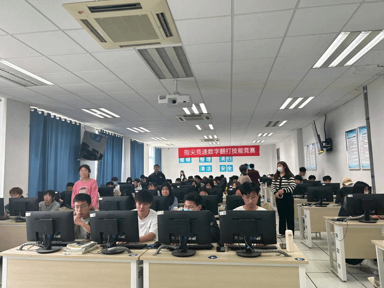 竞赛开始之前由主持人向大家讲解比赛规则及电脑演示竞赛操作,比赛时间为10分钟,现场若干名工作人员负责监考。比赛正式开始,随着计时员一声令下,敲击键盘声音越来越急促,同学们争分夺秒敲击数字,绽放指尖上的速度与魅力。最后成绩由系统自动生成,大家有序退场,由工作人员进行统计分数。