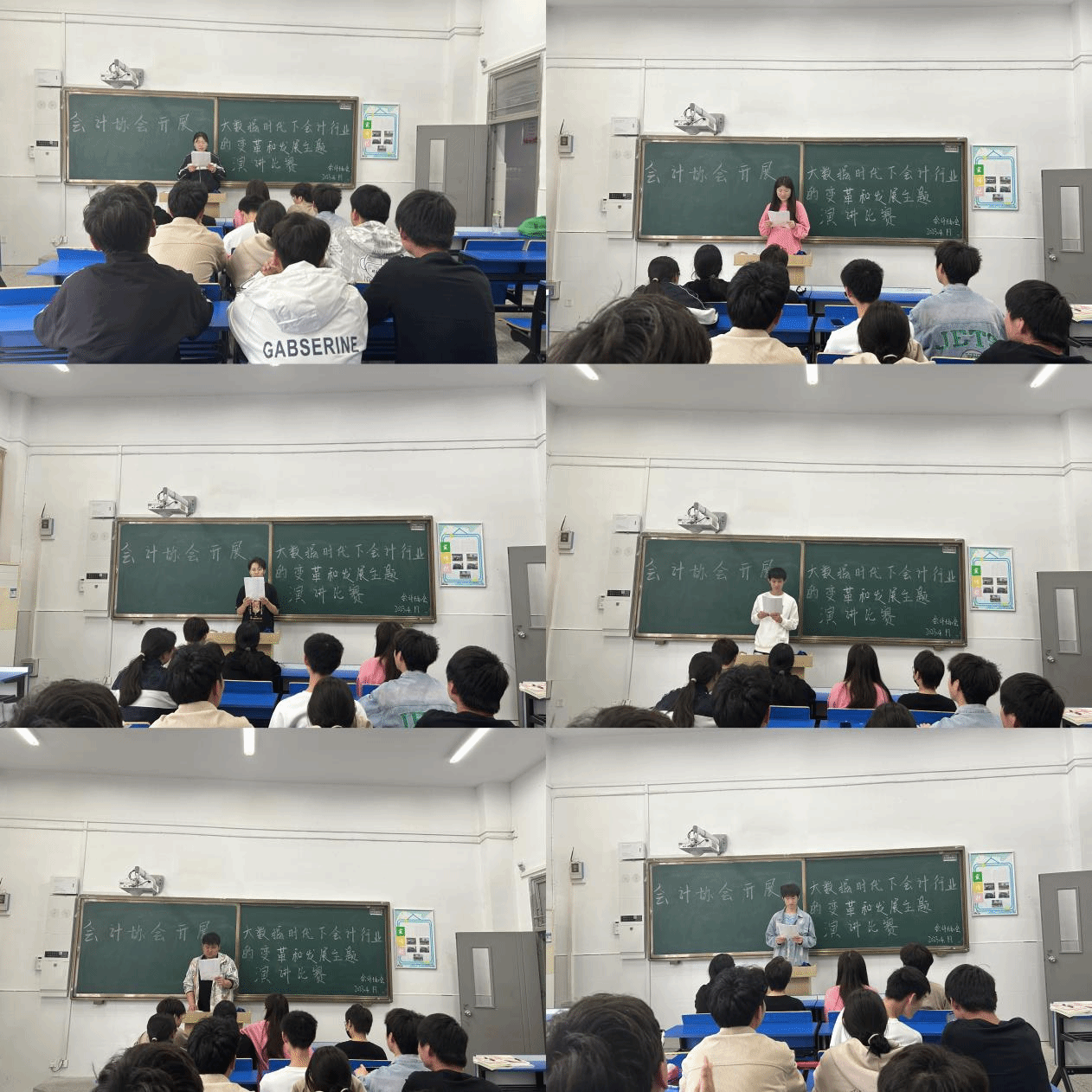 会计协会于4月19日中午11点40分在致真楼1102教室开展“大数据时代下会计行业的变革和发展”主题演讲比赛,本次活动由社团干事高天宇主持,会计协会部分成员参加。