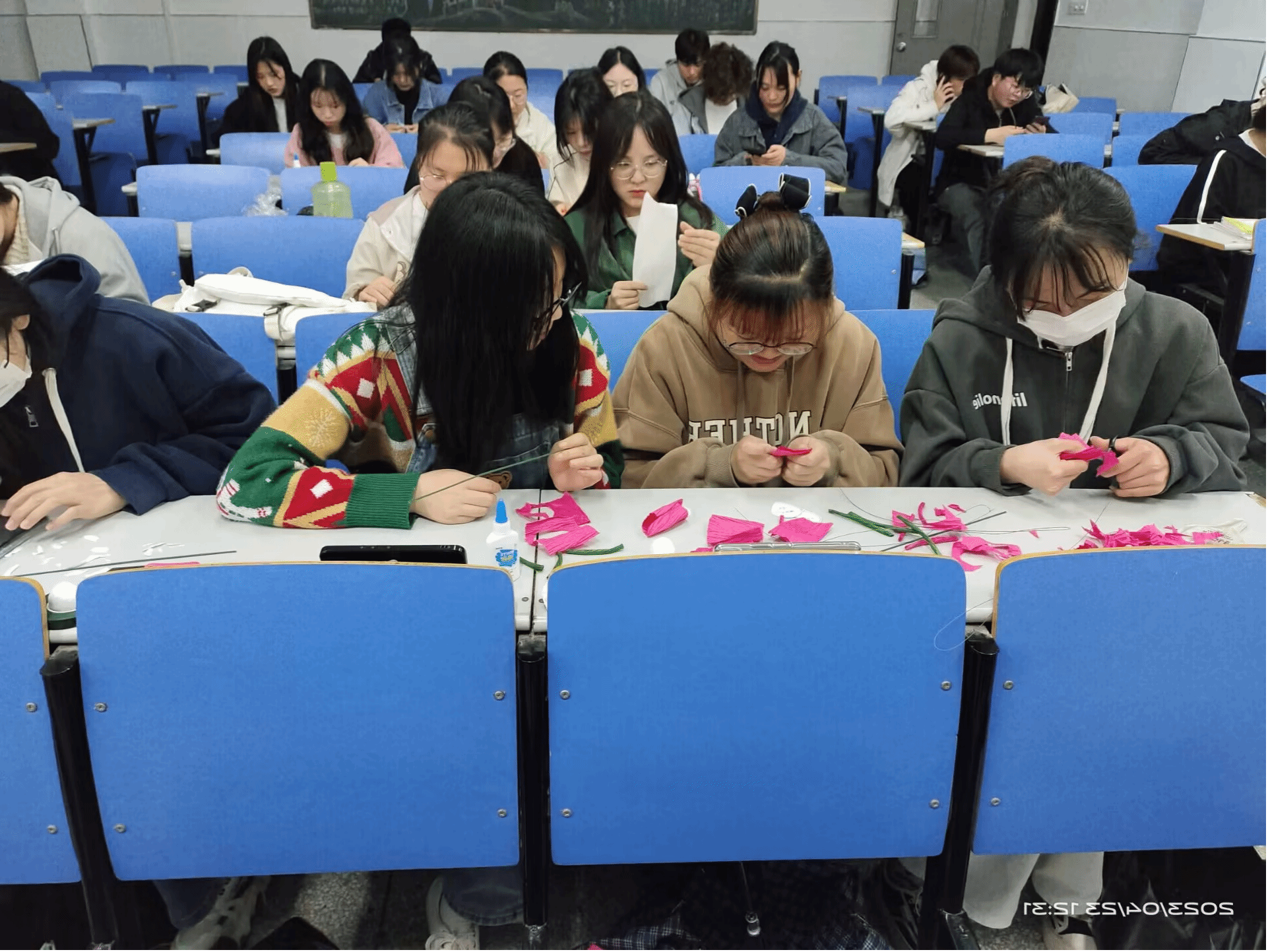 2023年4月23日,我院花艺社在教学楼2111举办了折纸花制作活动。活动负责人对本次折纸花制作活动所使用的工具进行介绍,将折纸花的步骤对社员们进行介绍。