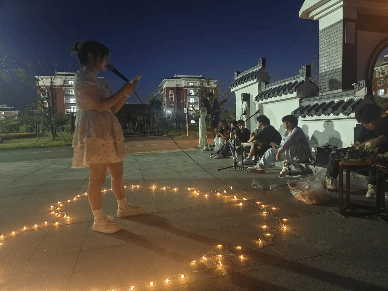 为丰富校园文化生活,展现新时代大学生积极向上的精神面貌,5月20日晚上19点,beat365华彩吉他社在校园内举行了一场别开生面的音乐汇演活动。活动现场,从弹吉他到唱歌,再到与爱好音乐的同学们深入交流相关乐理知识,一系列丰富多彩的活动吸引了众多师生前来观看和参与。