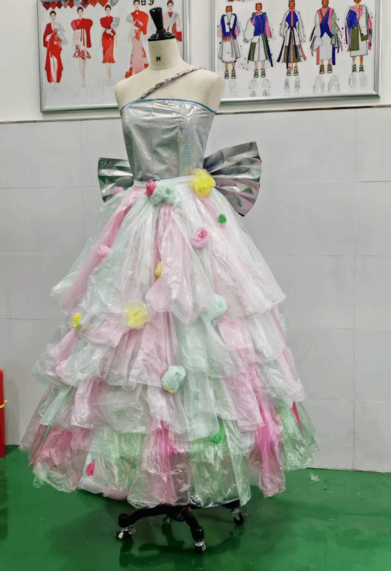 此次活动本质上是一种利用垃圾袋通过创意的想法制作出一件独一无二的作品,人们常常以为垃圾袋只能用来装垃圾而忽视了他的创新性,我们社团用垃圾袋制作出了一件独一无二的裙子参加校园文化节举办的“焕·新生”变废为宝创意大赛并在比赛中获得了高分第一名的成绩。