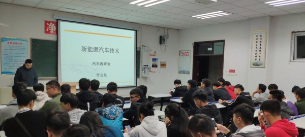 讲座中,贾会星老师结合当今汽车发展趋势,详细的介绍了新能源汽车——按照使用能源的来源划分,新能源汽车的技术可分为五类。一是基于传统石油燃料的节能环保汽车,如先进柴油车和混合动力汽车。二是基于天然气和石油伴生品的燃气汽车。三是料电池、氢动力汽车四是纯电动汽车。五是太阳能动力汽车等众多新能源汽车技术和知识。