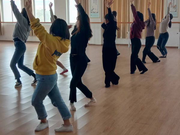 在这几周的时间里艺术团全体成员放弃了休息时间,每天中午12:30至13:50在舞蹈房里积极、努力的排练。一个动作做不好,再做一遍、两遍、三遍,直到满意为止。