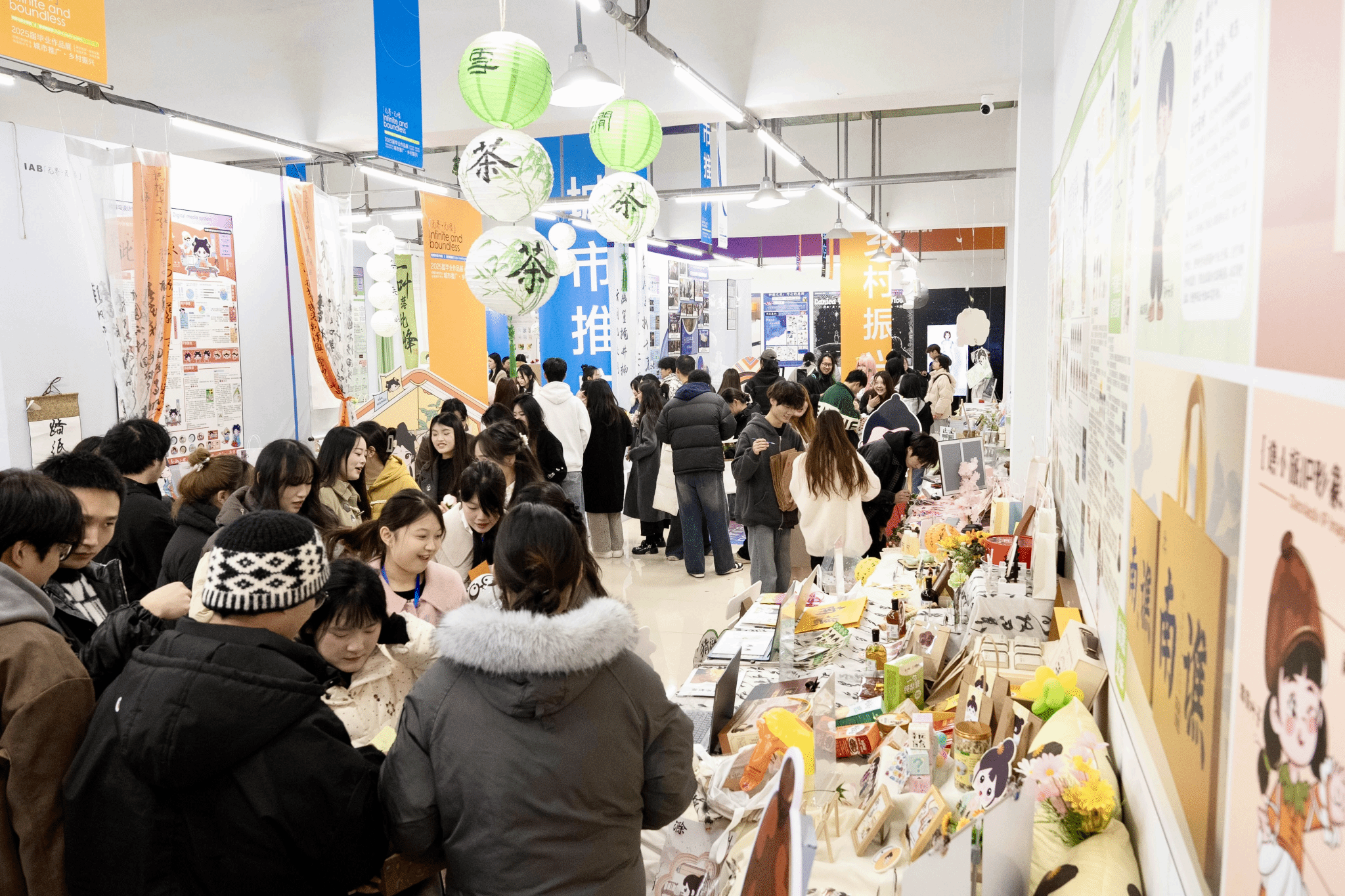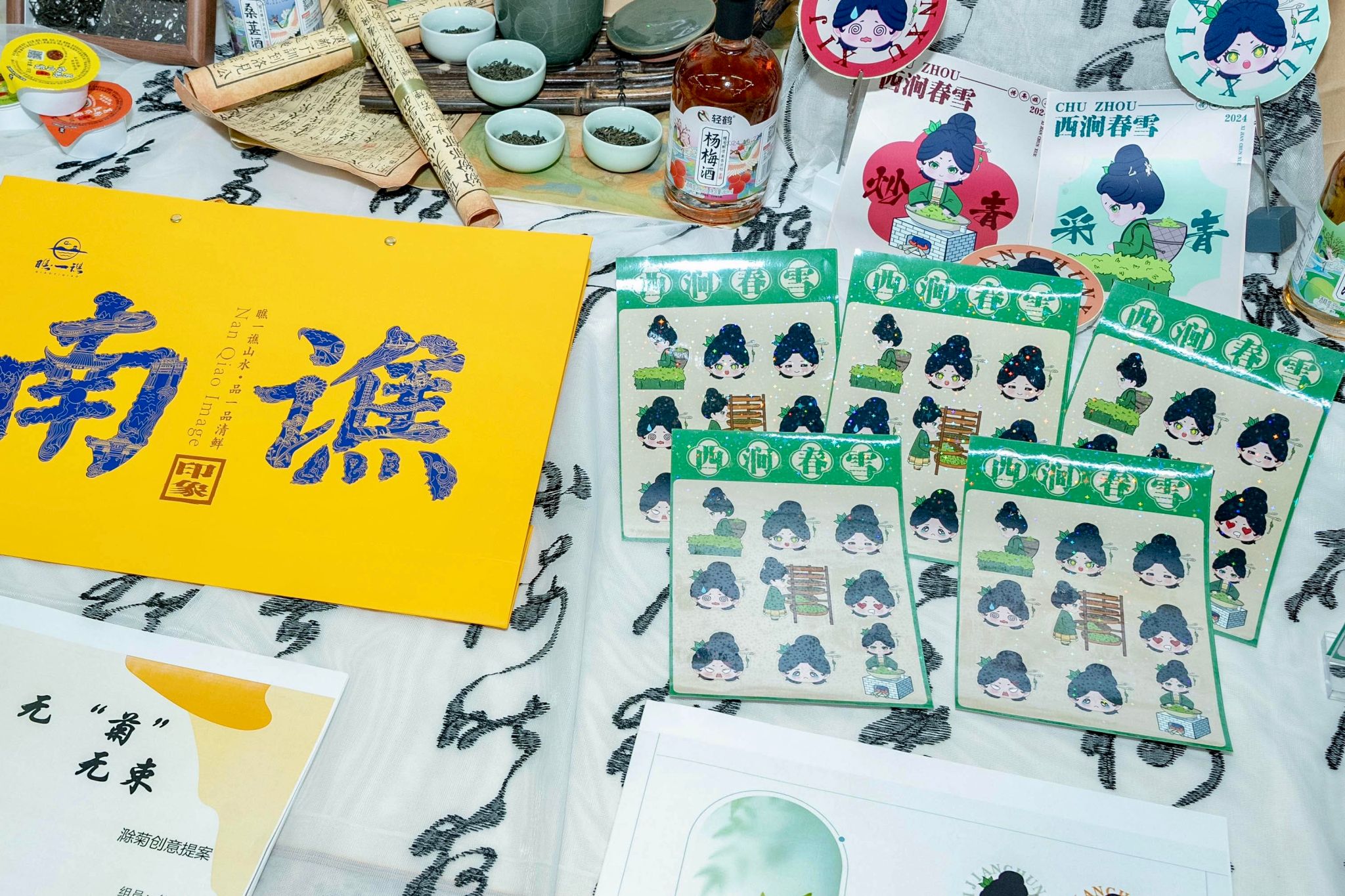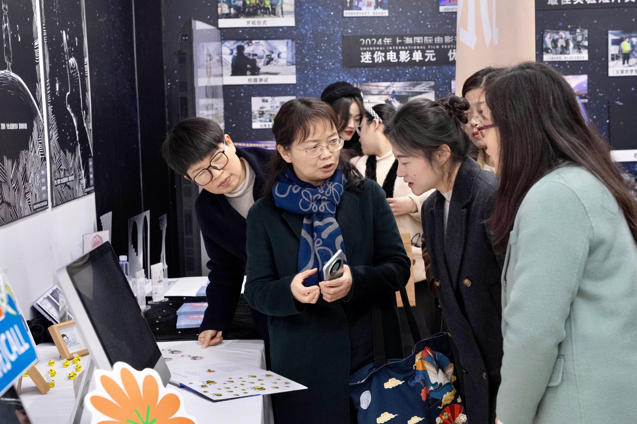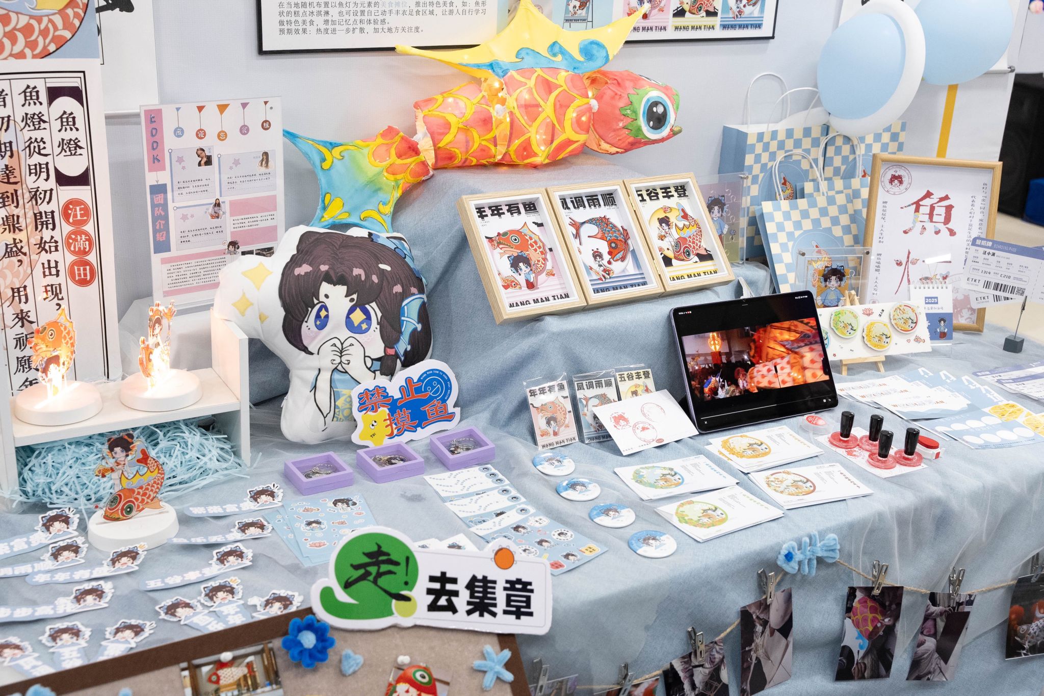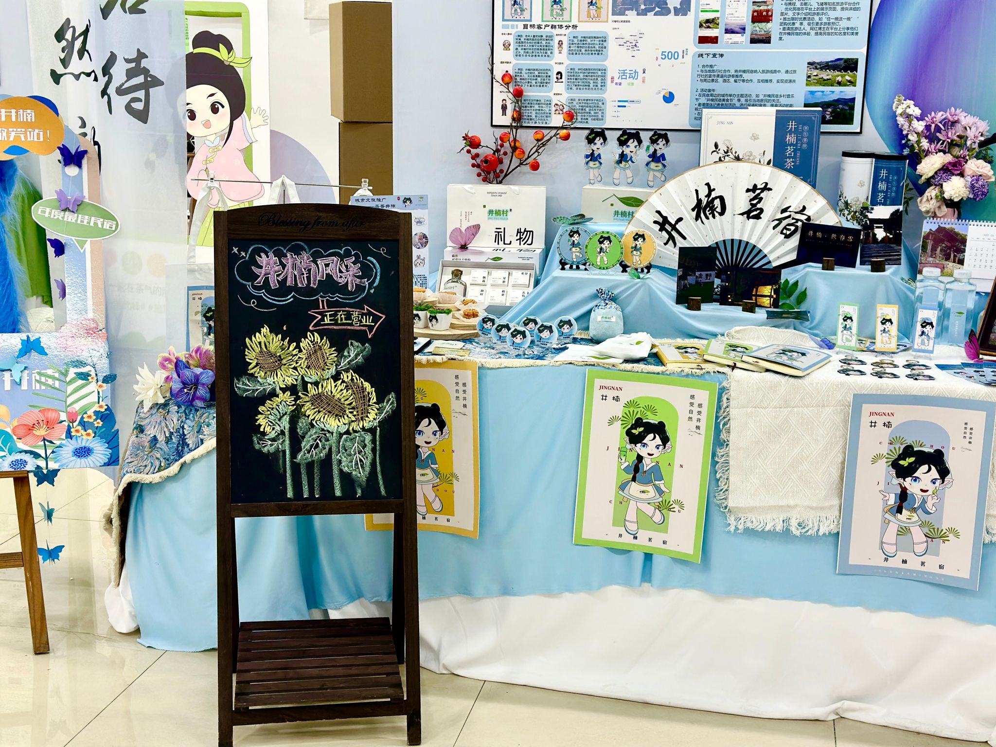 在展览现场,“南谯文旅&滁职”联合展位前,同学们将滁菊品牌形象与推广策略进行了全面的升级提档,无“菊”无束、“菊”世无双、别“菊”一格等系列化IP设计与推广策略,生动有趣且充满活力,吸引了众多观展师生;在“来滁与书共振”展位,同学们将滁州图书馆的建筑元素与地方文化结合,创新出“滁小蝶”“滁茧茧”等形象,并策划了全年11个可执行、能落地的推广活动方案;井楠茗宿作为南谯区人气景点,同学们通过扎根当地,对其文化因子进行提取和梳理,罗列出了详细的创意方案,一件件充满诗意的文创产品,十分精美;beat365廉洁文化品牌也设立了主题展位,以欧阳修、王阳明等具有地方代表性人物为原型,通过UI界面、策略推广等年轻化的视觉传达完整呈现,广受好评。还有一些观展师在“一叶落此峰”施集毛峰展位前驻足良久,仔细了解其背后的地方茶文化相关内涵。在影像单元,《父辈的梦想》、《龟兹》和《太空行》等作品,将科技梦想、非遗传承通过数字技术进行了数字化呈现。值得一提的是,每个展位都设置了有趣的互动环节。