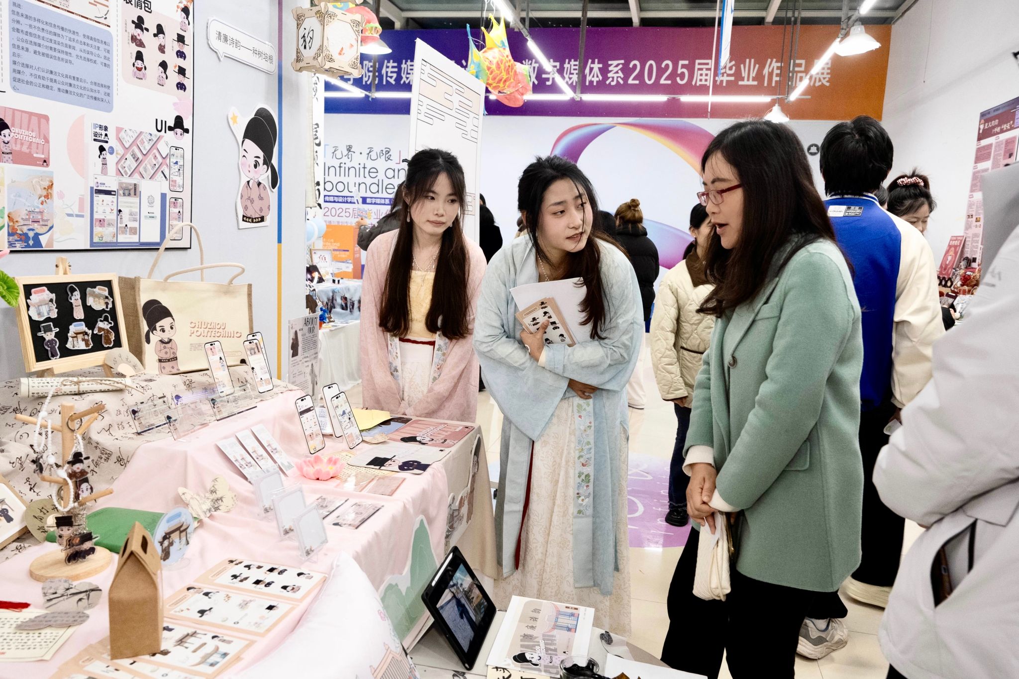 本次展览,由校传媒与设计学院数字媒体系14名教师和222名学生共同创作完成,共设50个展位和1个影像单元。立足滁州地方文化的内生与外衍,围绕“城市推广”和“乡村振兴”两大核心板块,结合数字化技术,通过系统的市场调研、精准的用户分析、严谨的策略推导、创新的活动设计和完整的视觉呈现,历经60天的创作周期,借助文本图稿、视频拍摄及动画制作,多维度视角诠释了“讲好中国故事,传播地方文化”的新路径。