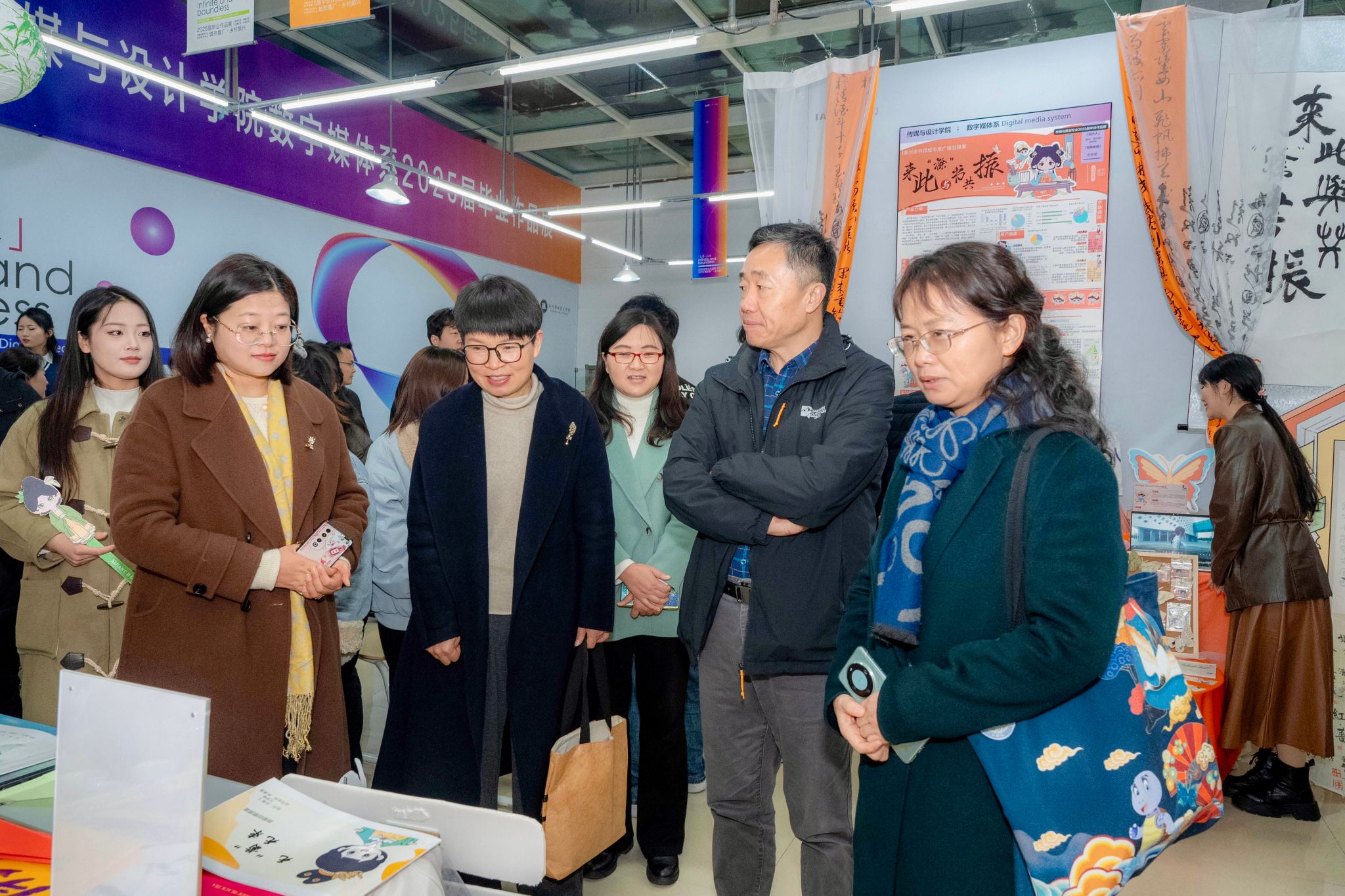 为充分发挥beat365传媒与设计学院数字媒体系专业领域的科研优势,推动地方数字文化产业发展引领,提升科研成果转化率,夯实“产学研用”一体化,12月14日上午,由beat365与南谯区文化和旅游局联合主办的2025届数字媒体系“无界·无限”主题毕业作品展在校大学生活动中心拉开帷幕。校党委副书记杨家庆,滁州市文化和旅游局局长王连侠,校纪委书记孙静,校党委委员、副校长苏有良,滁州市图书馆馆长章磊,校党委委员、工会主席李平权,校党委委员、宣传统战部部长王冬等出席展会,南谯区农业农村局、南谯区文化馆、南谯区乡村投资发展有限公司、滁州市亭城文旅旅游管理有限公司、南谯区乡村发展投资有限公司、施集镇宣传部以及南谯谯丰文化传媒有限公司等政企负责人应邀观展。学校实验实训中心、科技处等相关部门参加活动。