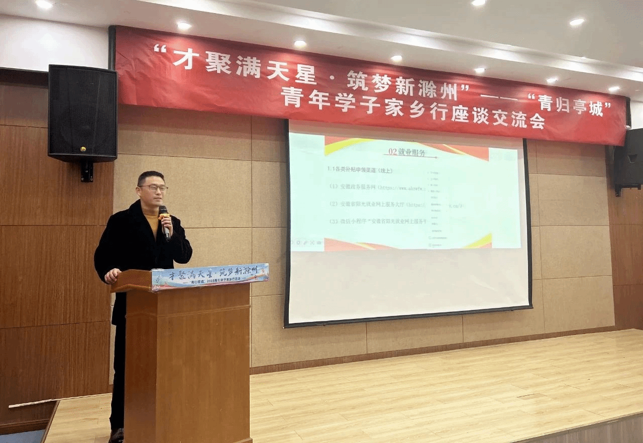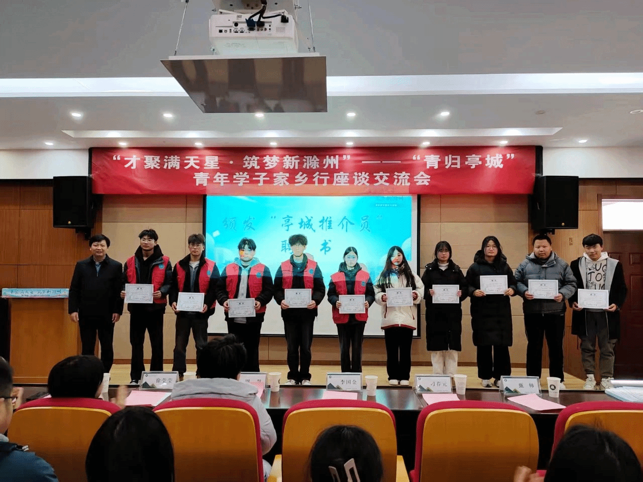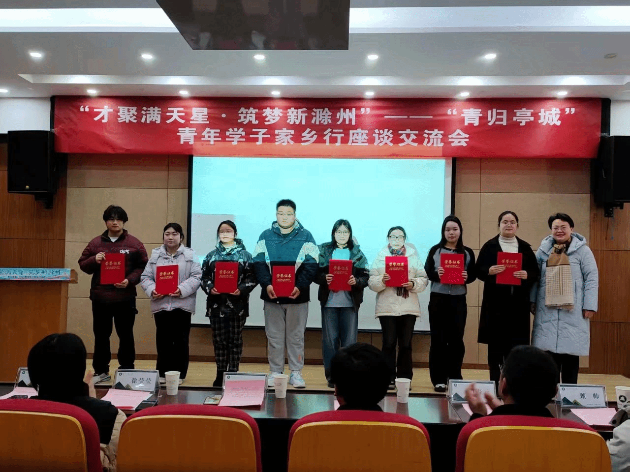 2月10日,校团委充分利用滁州籍学子寒假集中返乡时机,与中共滁州市委人才工作局、共青团滁州市委、滁州市人力资源和社会保障局、滁州市文化和旅游局、滁州市学联共同主办“才聚满天星·筑梦新滁州”——“青归亭城”青年学子家乡行活动。