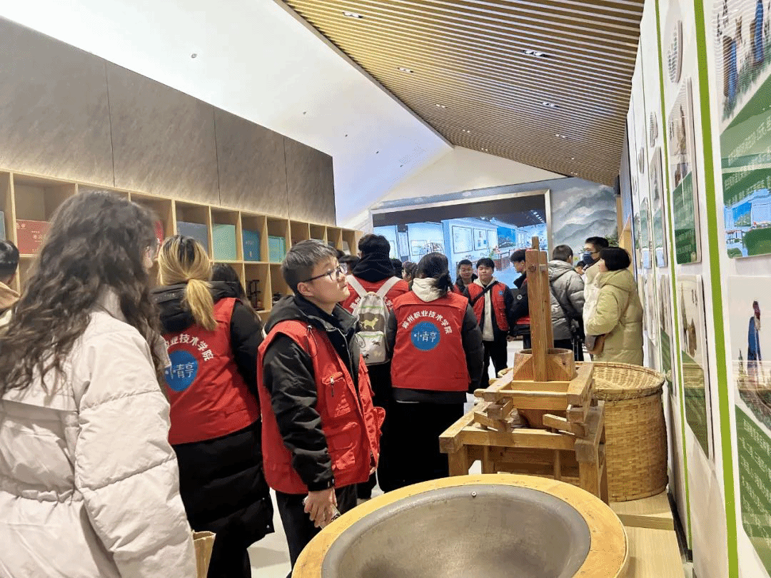第四站参观井楠村村部及周边景点。生动有趣的讲解将文旅融合的独特魅力和城乡融合的美丽画卷徐徐展开,青年学子们在茶文化馆中坐而论道,体会文人墨客的寄情山水,感受家乡土地的文化传承。