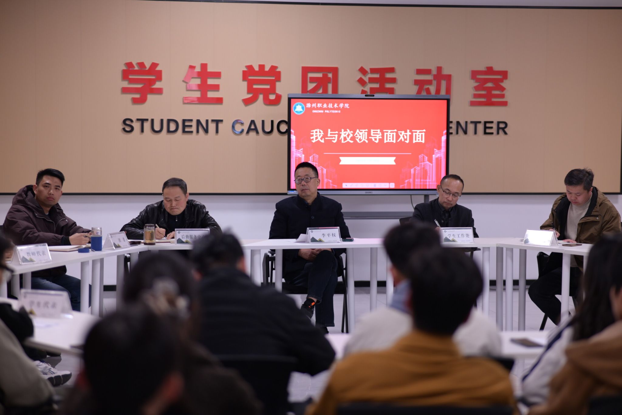 3月19日,由校团委牵头的“我与校领导面对面”师生座谈会在“一站式”学生社区党团活动室举行。本次座谈会旨在进一步筑牢学校与学生之间的沟通桥梁,及时倾听学生心声,解决学生在学习和生活中遇到的实际问题,共同推动学校各项事业的发展。校党委委员、工会主席李平权,学生工作处、后勤服务中心、财务处、校团委主要负责人与来自各教学院部的30余名师生代表齐聚一堂,就教育教学、后勤服务、成长成才等方面进行了深入交流。